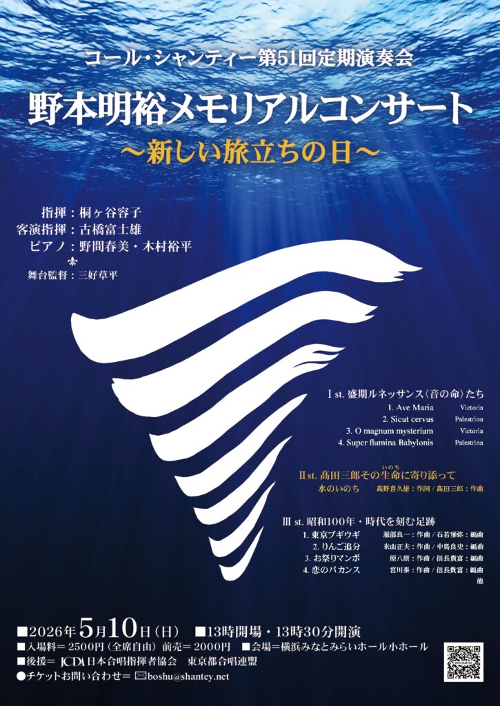 コール・シャンティー第51回定期演奏会 野本明裕メモリアルコンサート ~新しい旅立ちの日~